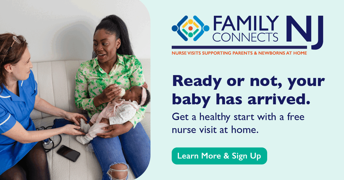 Family Connects NJ is a program of the New Jersey Department of Children and Families that connects parents with a specially trained nurse for a personalized follow up visit at home within the first two weeks after their child’s birth. Visits are offered to all families in Atlantic, Burlington, Camden, Cape May, Cumberland, Gloucester and Salem Counties, regardless of their circumstances.